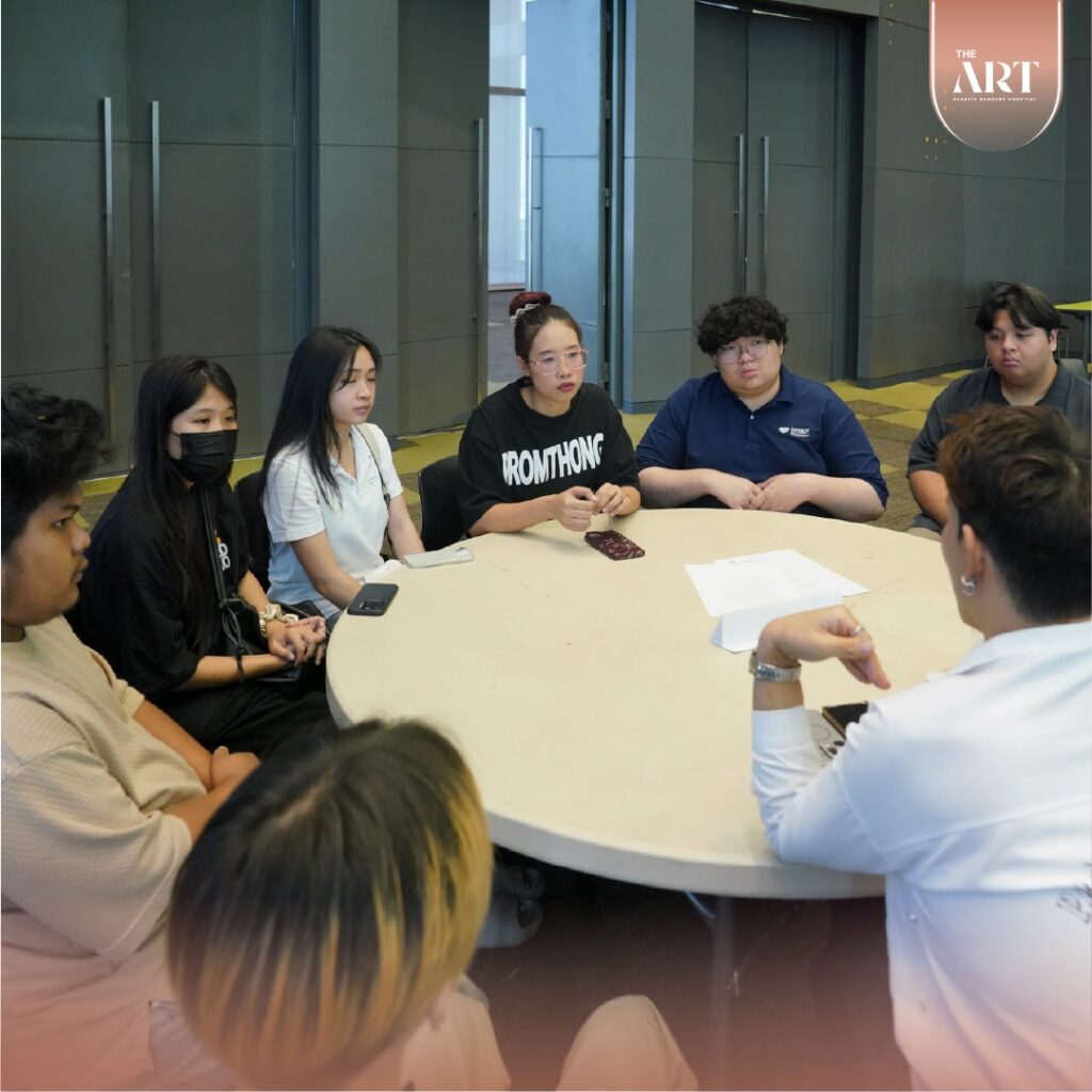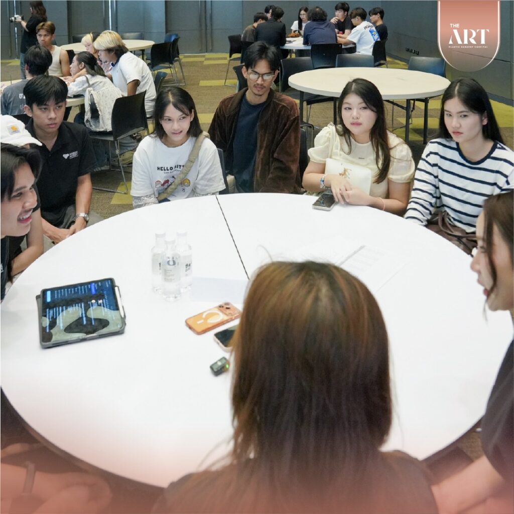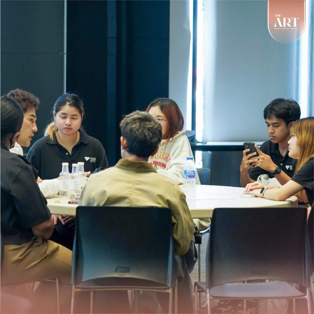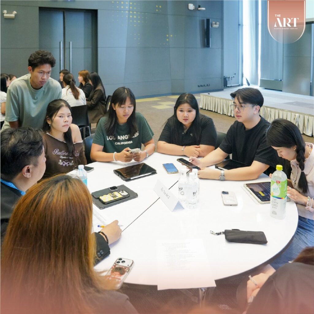 กิจกรรมในครั้งนี้นำโดย คุณบลู V-CEO พร้อมทีม Director และทีม Product Manager ของ The Art Hospital ที่มาร่วมให้คำปรึกษาแบบใกล้ชิดกับนักศึกษาแต่ละทีม