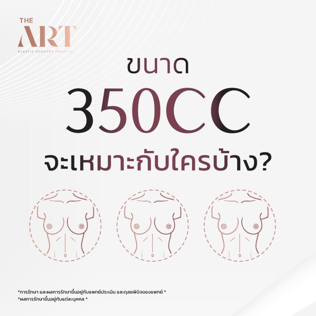 - ผลลัพธ์ของการเสริมหน้าอกขนาด 350 CC หากเลือกได้เหมาะสม จะทำให้ทรงหน้าอกแลดูได้สัดส่วนและเป็นธรรมชาติ แต่ 350 CC ไม่ใช่ไซซ์ “มาตรฐาน” สำหรับผู้หญิงทุกคน