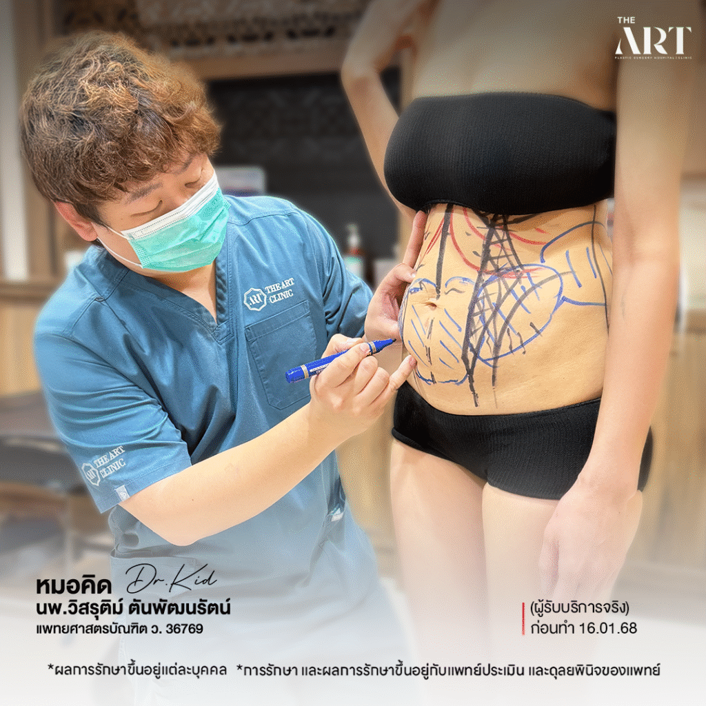 - ประเมินรูปร่างและแนวกล้ามเนื้อ เพื่อกำหนดตำแหน่งที่จะตกแต่งและดูดไขมัน