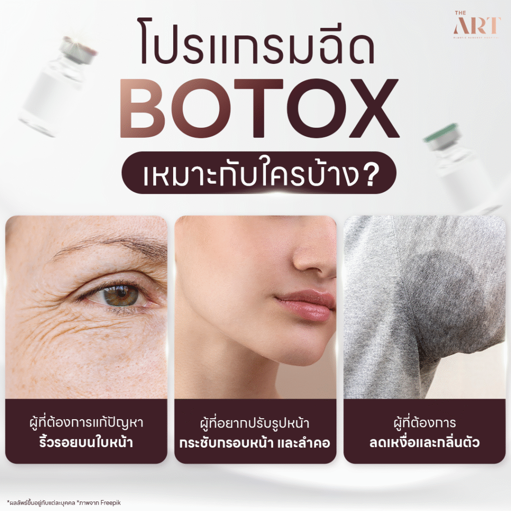 กลุ่มคนที่เหมาะกับการทำโปรแกรมฉีดโบท็อกซ์ ได้แก่